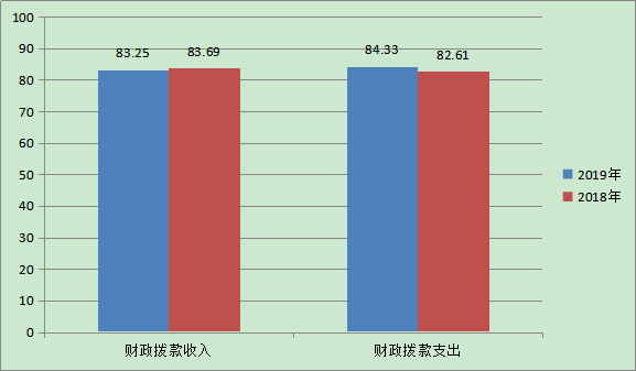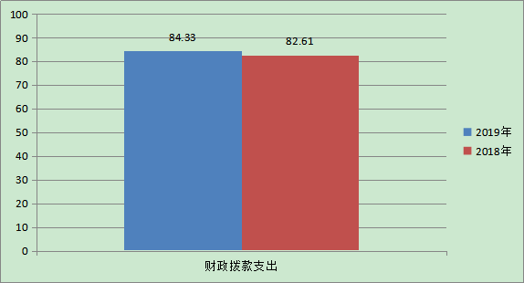 2019年度财政拨款支出84.33万元,占本年支出合计的100%。与上年相比,财政拨款支出增加1.72万元,增长2.09%,主要原因是本年人员工资统一调整,社保、工会经费增加;由于本单位业务工作增加,所以项目经费支出增加;上年年末存在结转和结余资金,本年度支出增加。