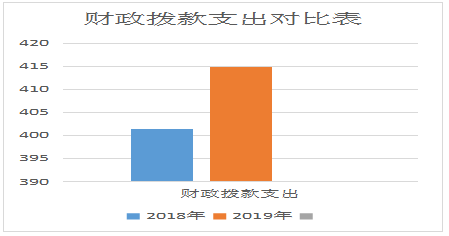2019年度财政拨款支出414.88万元,上年财政拨款支出385.61万元。增长主要原因是人员工资以及年度考评奖的增加。