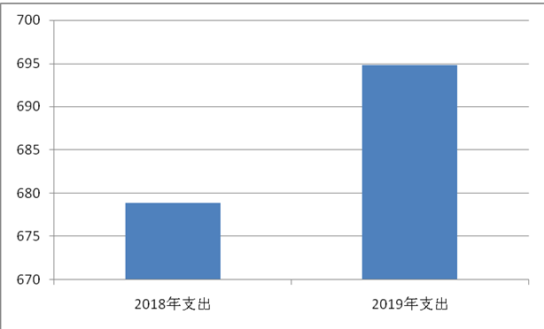 2019年度支出为694.77万元,2018年度支出为678.86万元,比上年增加了0.02%。增加原因为临床支出增加,支出相对也增加。