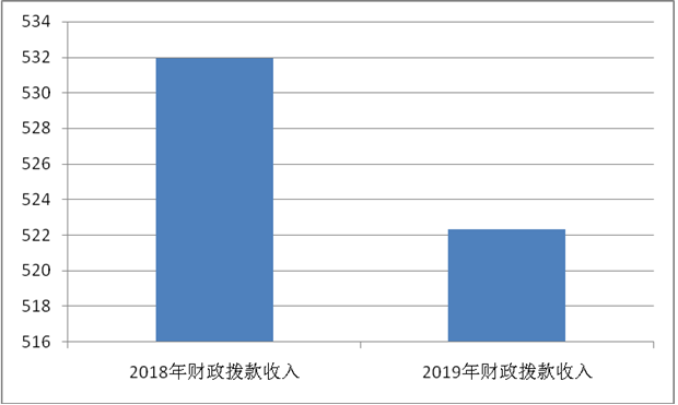 2019年度财政拨款收入为522.32万元,2018年度财政拨款收入为531.95万元,比上年减少0.02%。