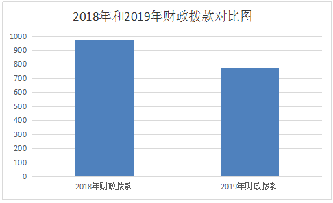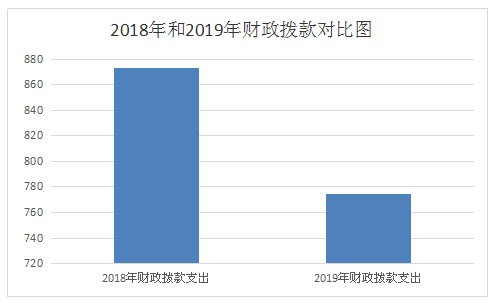 2018年度财政拨款支出875.73万元,2019年度财政拨款支出774.57万元,减少101.16万元,增加变化的主要原因是公卫发放增大