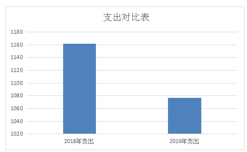 2019年度支出为1076.48万元,2018年度支出为1161.89万元,比上年减少了7.35%。减少原因为临床收入减少,支出相对也减少。