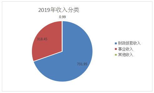 2019年度收入合计1051.39万元,其中:财政拨款收入731.95万元,占69.62%;事业收入318.45万元,占30.29%;