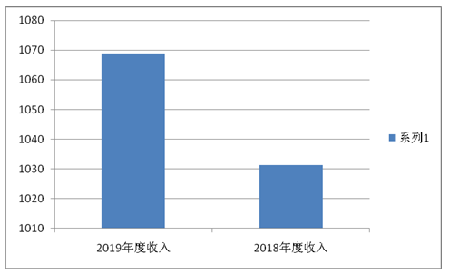 2019年度收入1068.86万元,2018年度收入1031.31万元,比上年增长37.55万元,主要原因是新增业务科室