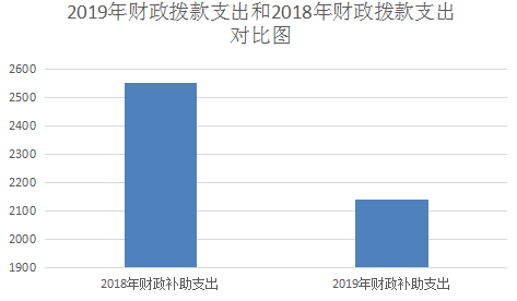 2019年财政拨款支出2142.57万元,2018年财政拨款支出2550.21万元。2019年度较2018年降低15.98%。2018年拨付2016年和2017年增量绩效工资。