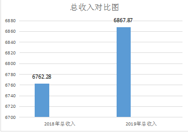 2019年度收入6867.87万元,2018年度收入6762.28万元,2019年比2018年增加105.59万元情况,主要是单位门诊、住院病人增加。