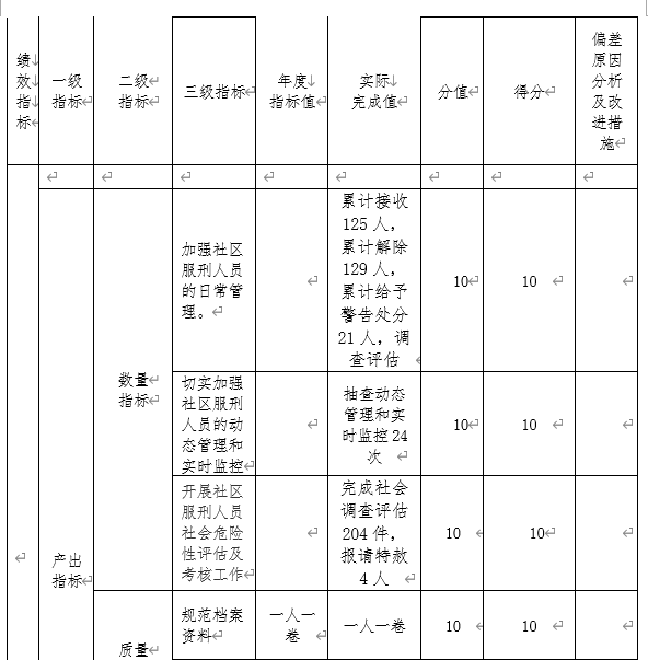 | 一级指标 | 二级指标 | 三级指标 | 分值 | 指标说明 | 评分标准 | 指标值计算公式和数据获取方式 | 年初目标值 | 实际完成值 | 得分 | 未完成原因分析与改进措施 | 绩效指标分析与建议 |