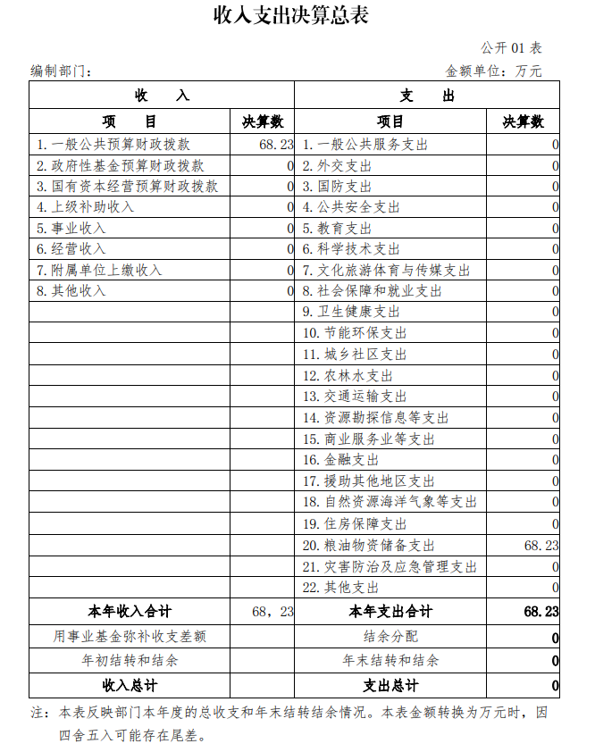 一、收入支出决算总表