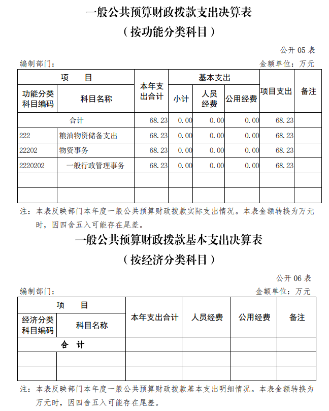 | 表6 | 一般公共预算财政拨款基本支出决算表(按经济分类科目) | 是 | 无基本支出 |