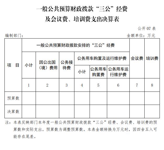| 表7 | 一般公共预算财政拨款“三公”经费及会议费、培训费支出决算表 | 是 | 无三公经费及会议费、培训费 |