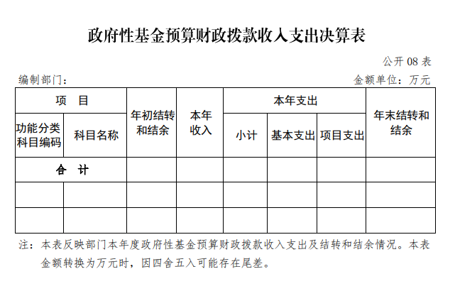 | 表8 | 政府性基金预算财政拨款收入支出决算表 | 是 | 无基金收入支出 |