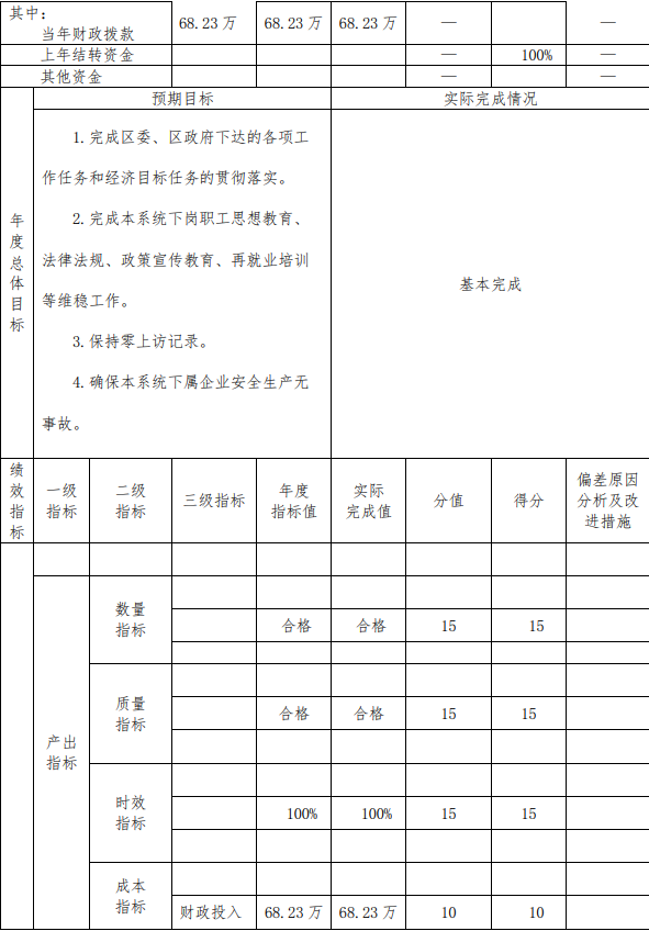 本部门组织对2019年度部门整体进行了绩效自评,涉及资金68.23万元。