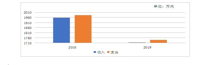 2019年,本单位财政拨款收入1714.35万元,较上年减少243.38万元,减少了12.43%。减少的主要原因为:人员减少。