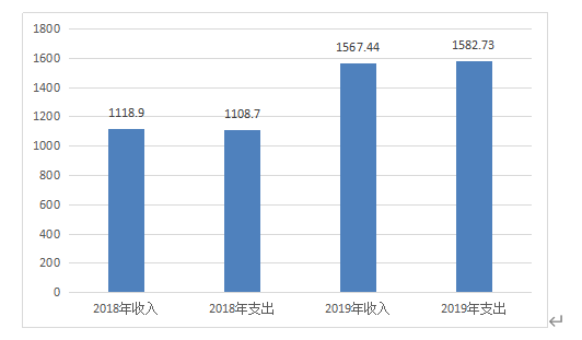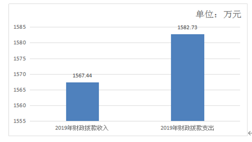 2019年度收入合计1567.44万元,其中:财政拨款收入1582.73万元,占100%;