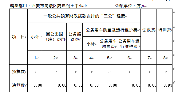 编制部门:西安市高陵区药惠银王中心小 金额单位:万元