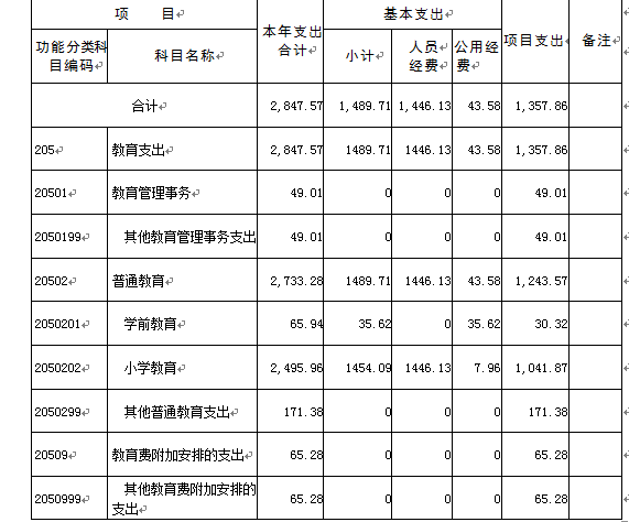 | 2050202 | 小学教育 | 2,495.96 | 2,495.96 | 0.00 | 0.00 | 0.00 | 0.00 | 0.00 | 0.00 |