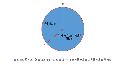 2019年度“三公”经费财政拨款支出决算中,因公出国(境)费支出决算0万元,占0%;公务用车购置费支出0万元,占0%;公务用车运行维护费支出决算1.6万元,占64%;公务接待费支出决算0万元,占0%,培训费0.9万元,占36%。具体情况如下: