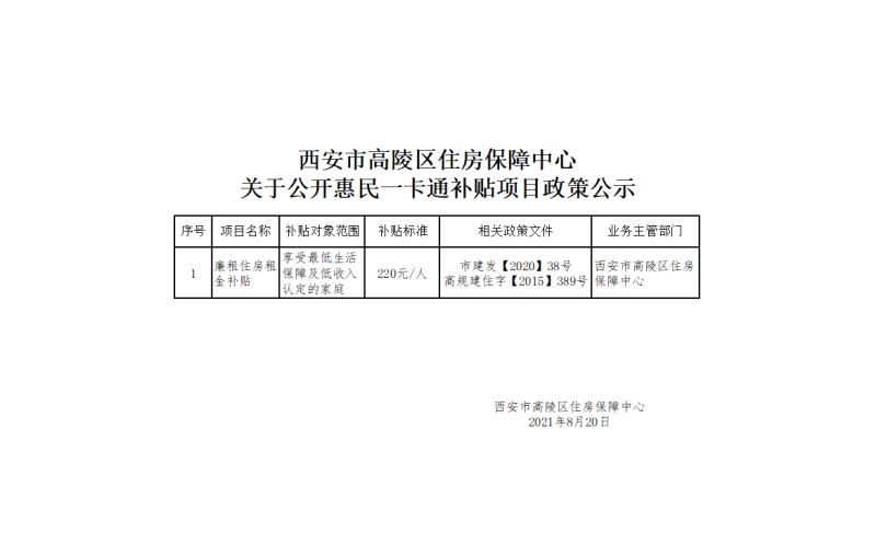 西安市高陵区廉租住房租金补贴政策