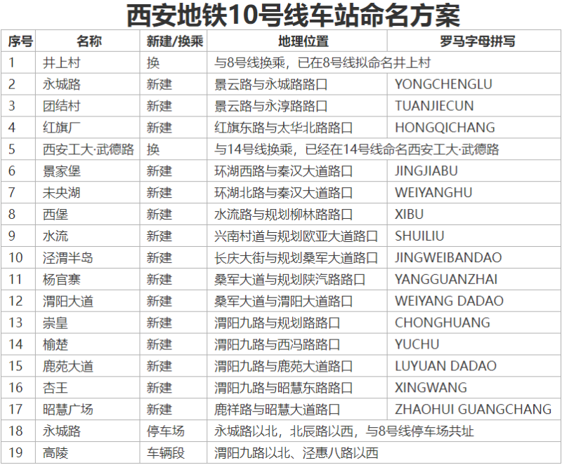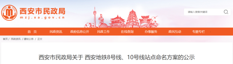 近日,西安市民政局在官网发布了关于西安地铁10号线站点命名方案的公示。