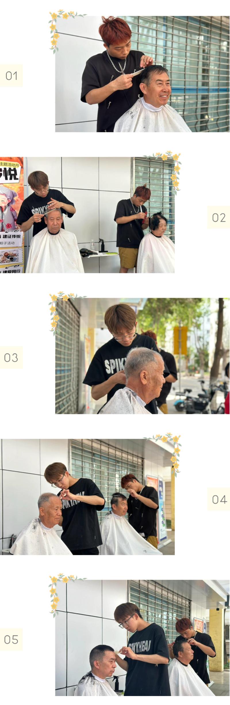 “太热了,小伙子你帮我剪短一些啊。”义剪现场,理发师们为老人们系好围布,根据老人们的要求,熟练地理起发来。理发期间还不时与老人们拉拉家常,聊聊天,活动现场热烈又温馨。经过一番修剪,老人的发型更显利落、精神、干净。“真是不错,夏日送清凉,头发剪短后感觉自己都年轻了。”居民王爷爷开心地说。