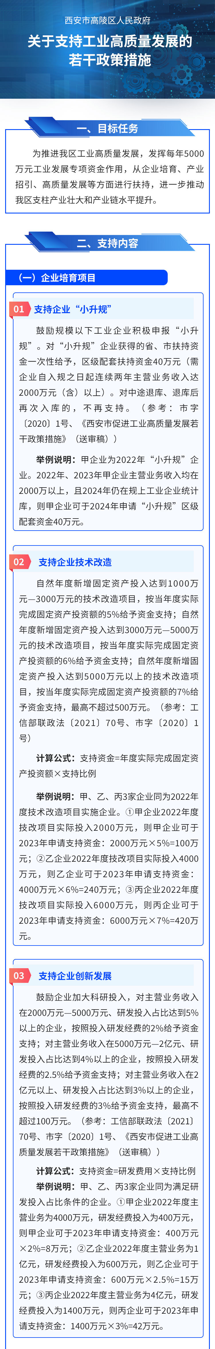 为持续激发企业活力,强化创新驱动,实现产业倍增,全力壮大支柱产业集群,做大新兴产业集群,推动高陵工业经济高质量发展,根据工业和信息化部等六部门《关于加快培育发展制造业优质企业的指导意见》(工信部联政法〔2021〕70号)、《中共西安市委 西安市人民政府关于加快建设先进制造业强市的实施意见》(市字〔2020〕1号)、《西安市促进工业高质量发展若干政策措施》(送审稿)文件精神,结合我区实际,特制定本政策。