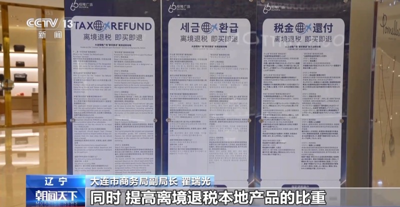 大连市商务局副局长 翟瑞光:在大型的商圈、步行街、旅游景区、酒店等境外旅客集聚地增设退税商店,为境外的游客提供更多更好的即买即退消费场景。同时,提高离境退税本地产品的比重,我们将对全市国货潮品、老字号、文创等商品进行全面梳理,择优选入退税商店,让更多境外游客有大连好物可选。