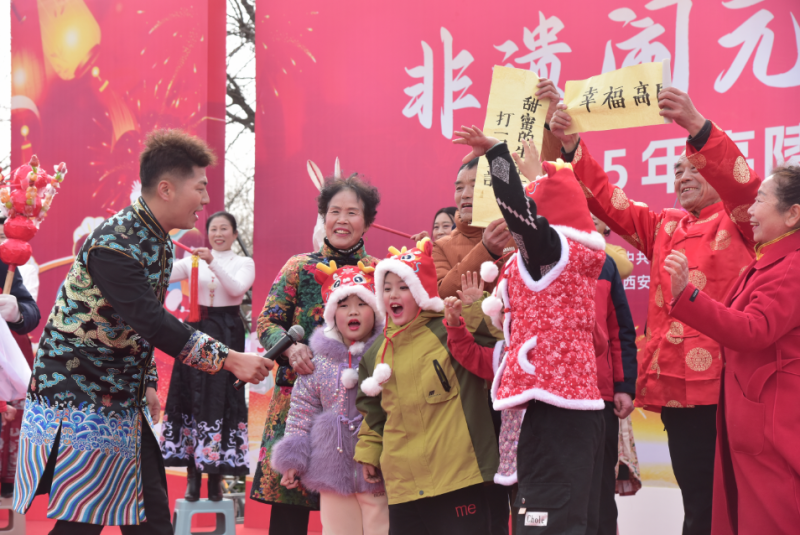 不点花灯月不圆,不耍社火年没完。上午11时许,社火展演在欢快喜庆的庆元宵民俗情景剧表演中拉开序幕,高陵区文化志愿者们自编自导自演,再现了元宵节赏花灯、猜灯谜、吃元宵的传统习俗,将观众带入了一个充满节日氛围的温馨场景,唤起了高陵人心中的那一抹独特“年味”记忆。随后,伴随着铿锵激昂的锣鼓声,来自全区的15支民间社火表演队1400余名群众演员们和着欢快的节拍陆续入场,已流传两千余年的西营西周战鼓、桑家舞龙,和传承600余年的药惠竹马、船张芯子等多种非遗社火震撼上演,还有火红的秧歌队、惟妙惟肖的舞龙舞狮、活泼可爱的大头娃娃、起伏波动的划旱船、灵动婆娑的舞蹈串烧……这些由村组社区群众和联谊会自发组织的多种民俗节目相继亮相,不仅为市民游客呈现出一场精彩纷呈的社火狂欢,更充分展现了高陵年俗文化、非遗文化的独特魅力。