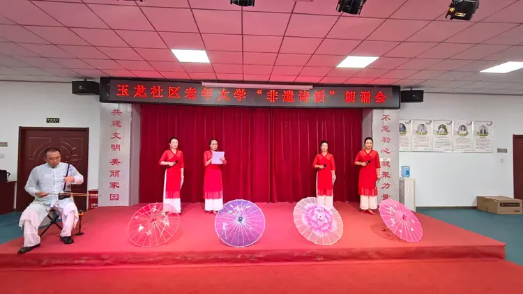 6月12日,2025 年文化和自然遗产日即将到来之际,一场别开生面的玉龙社区老年大学“非遗诗话”朗诵会在高陵区泾渭街道玉龙社区举办,旨在传承和弘扬非物质文化遗产,丰富老年人的精神文化生活,为社区老年群体搭建展示自我、传承文化之美德的平台。
