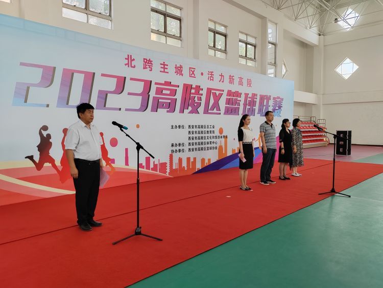 6月26日下午,“北跨主城区•活力新高陵”2023高陵区篮球联赛在区文体中心体育馆隆重揭幕。开幕式由区文化和旅游体育局党委书记、局长雷彬主持,区人大常委会副主任、区总工会主席阎红伟和区政府副区长薛霞出席,薛区长为比赛致辞,阎主席宣布篮球联赛开幕并为比赛开球。