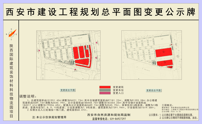 西安涌东实业有限公司陕西国际建筑装饰材料科技物流园项目于2023年4月28日核发《建设工程规划许可证》(建字第610117202330173)。因建设单位申请建设工程规划总平面图变更事项,现对该项目建设工程规划总平面图变更进行公示。