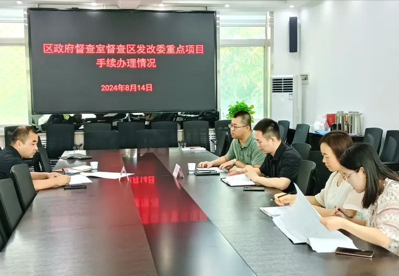 8月14日上午,区政府督查室对我委主管的重点项目进行了专项督查。督查聚焦项目手续办理的合规性与项目推进的实效性,通过现场审查与分析,全面评估了项目管理现状。结合督查结果,督查室明确了后续工作指导要求,强调我委需进一步优化项目管理,加快手续办理进度,确保重点项目高效有序推进,实现既定发展目标。