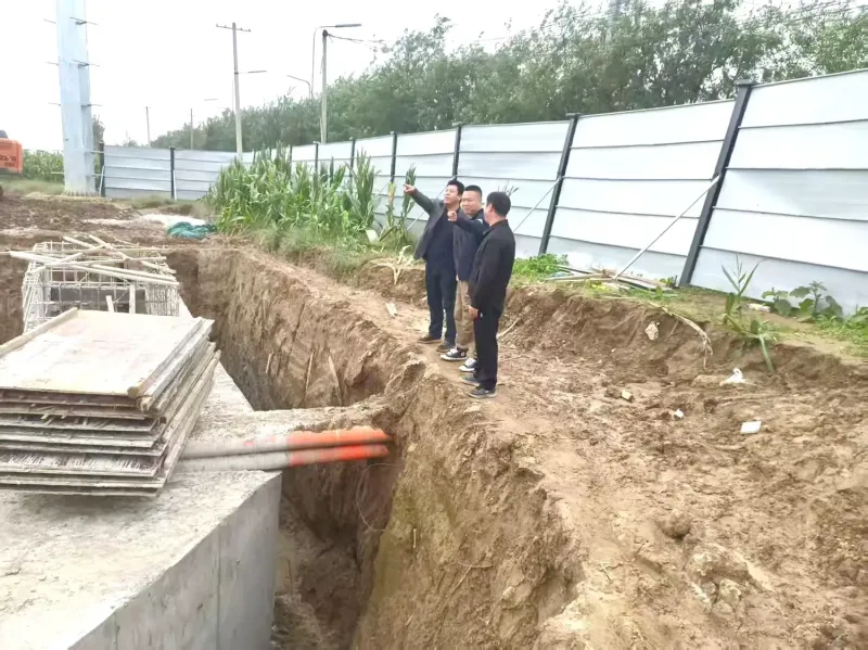 10月16日,节能监察监测中心赴110千伏聂罗线电力迁改项目现场开展检查。该项目已新立塔基19个(高陵10个、经开9个),完成T3#至T18#共16个塔基钢管杆吊立,剩余T1#、T2#、T19#因处于高压线下,计划待所有施工完成后停电架线时同步实施钢管杆吊立;新建电力沟道总长760米(含600米管沟、160米顶管),目前管沟完成490米,剩余110米正进行钢筋绑扎及浇筑(主要为管沟与塔基、管沟与顶管的连接贯通施工),两处顶管已全部完成。受连续降雨影响,工程进度有所放缓,施工现场已通过搭设操作坑遮雨棚、增设抽排水设备积极应对,全力保障后续施工有序推进,项目计划10月底完成。