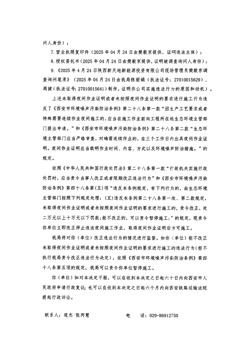 西安市生态环境局作出陕A高陵环违改〔2025〕1号责令改正违法行为决定书