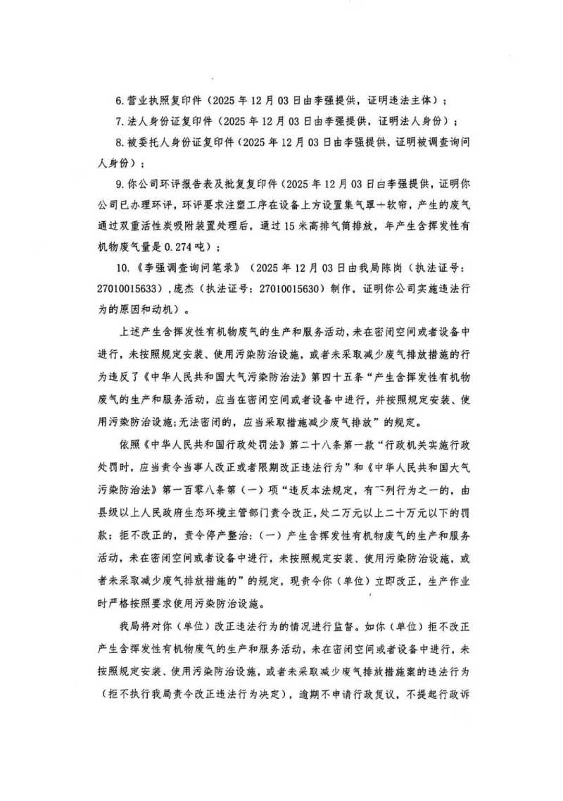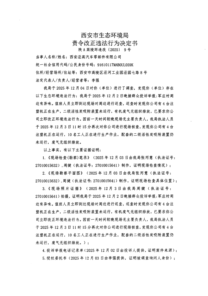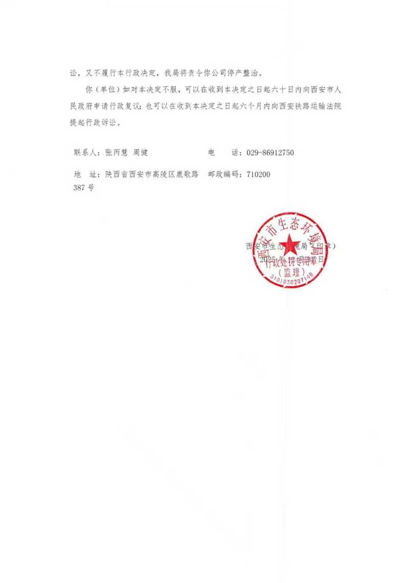 西安市生态环境局责令改正违法行为决定书陕A高陵环违改〔2025〕9号