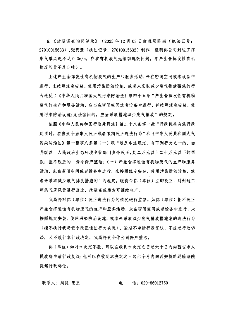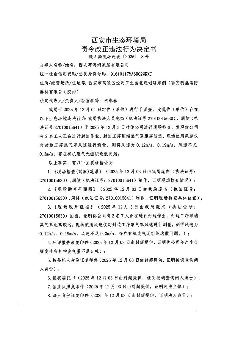 西安市生态环境局作出陕A高陵环违改〔2025〕8号责令改正违法行为决定书