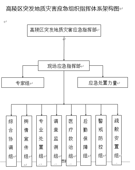 4. 高陵区突发地质灾害应急组织指挥体系架构图…………37