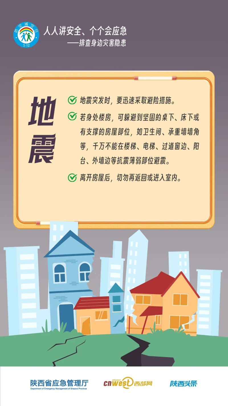 今年5月12日是第17个全国防灾减灾日,5月12日至18日为防灾减灾宣传周,今年全国防灾减灾日主题为“人人讲安全、个个会应急——排查身边灾害隐患”灾害离我们并不遥远,增强防灾减灾意识和能力水平与每一个人息息相关,那么,如遇自然灾害我们应该如何避险?