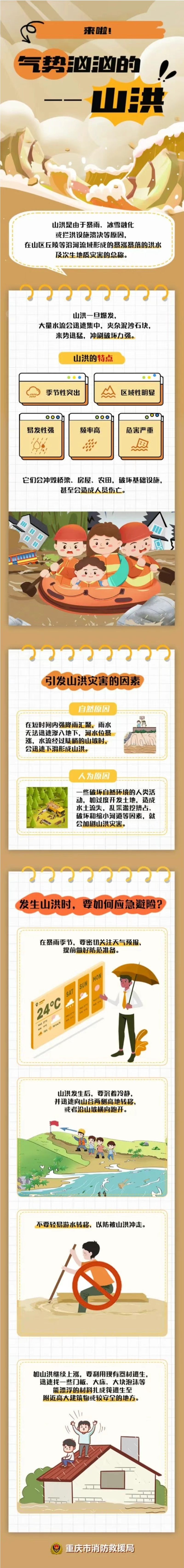 夏季暴雨多发易引发山洪灾害,山洪突发性强、水量集中、破坏力强,遭遇时反应和逃生时间短,重庆市消防救援局给出安全指南。