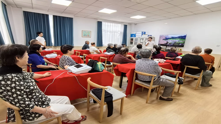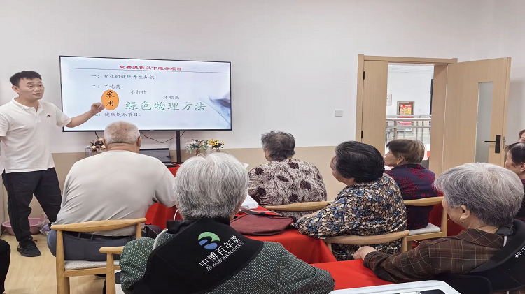 泾福苑社区养老服务站“健康大讲堂”免费为老年人提供专业的健康养生知识、中医理疗绿色物理疗法、健康娱乐节目等“嵌入式”养老服务项目,为社区老年人提供“嵌入式”养老服务支持,营造一个暖心、安心又活力四射的享老环境。