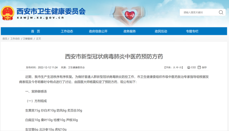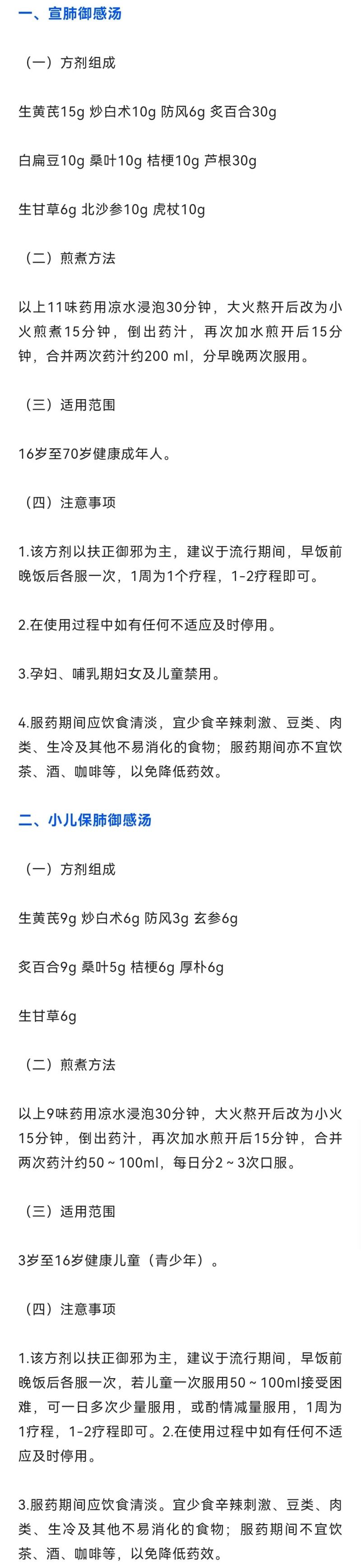 近期,西安市生产生活秩序有序恢复。为做好普通人群新型冠状病毒肺炎防控工作,西安市卫生健康委组织市级中医药救治专家指导组根据发病表现及今冬明春时令特点进行了讨论,由国医大师杨震拟定了预防方药,现公布如下: