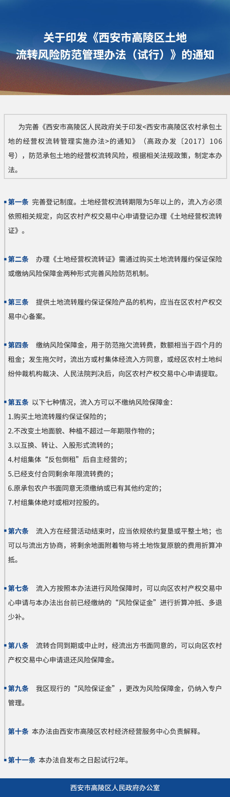 图解:西安市高陵区人民政府办公室关于印发《西安市高陵区土地流转风险防范管理办法(试行)》的通知