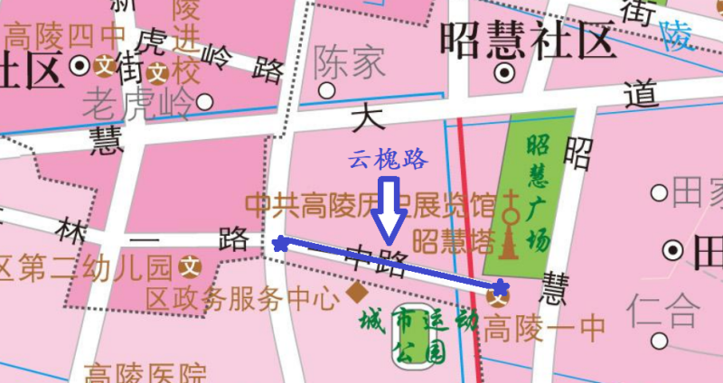 云槐路:原一中路,道路东起高陵一中,西至西韩大道,全长605米,宽12米。