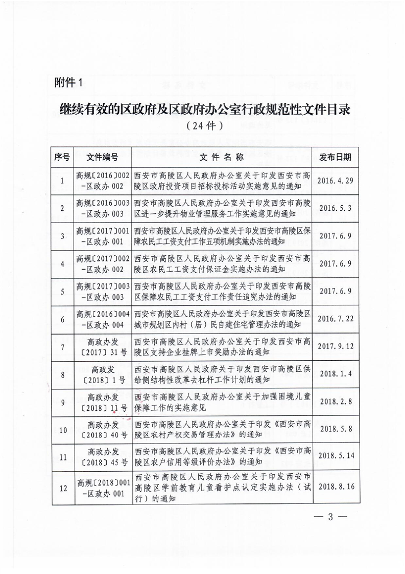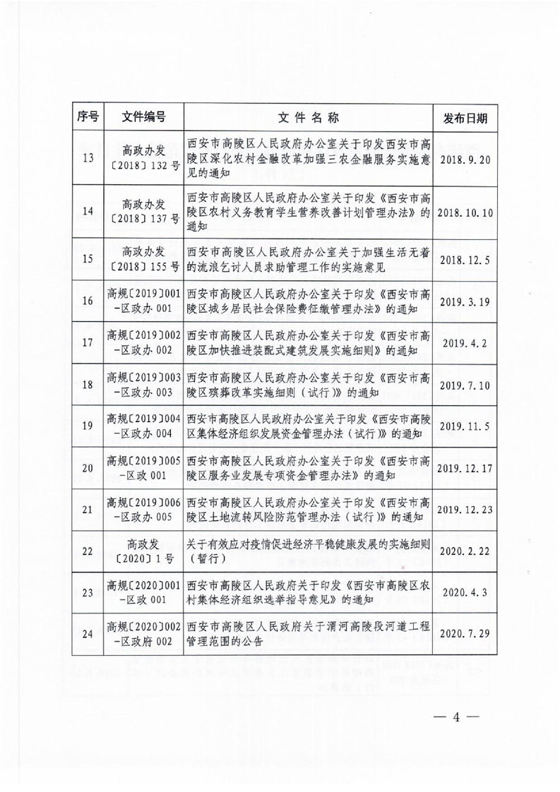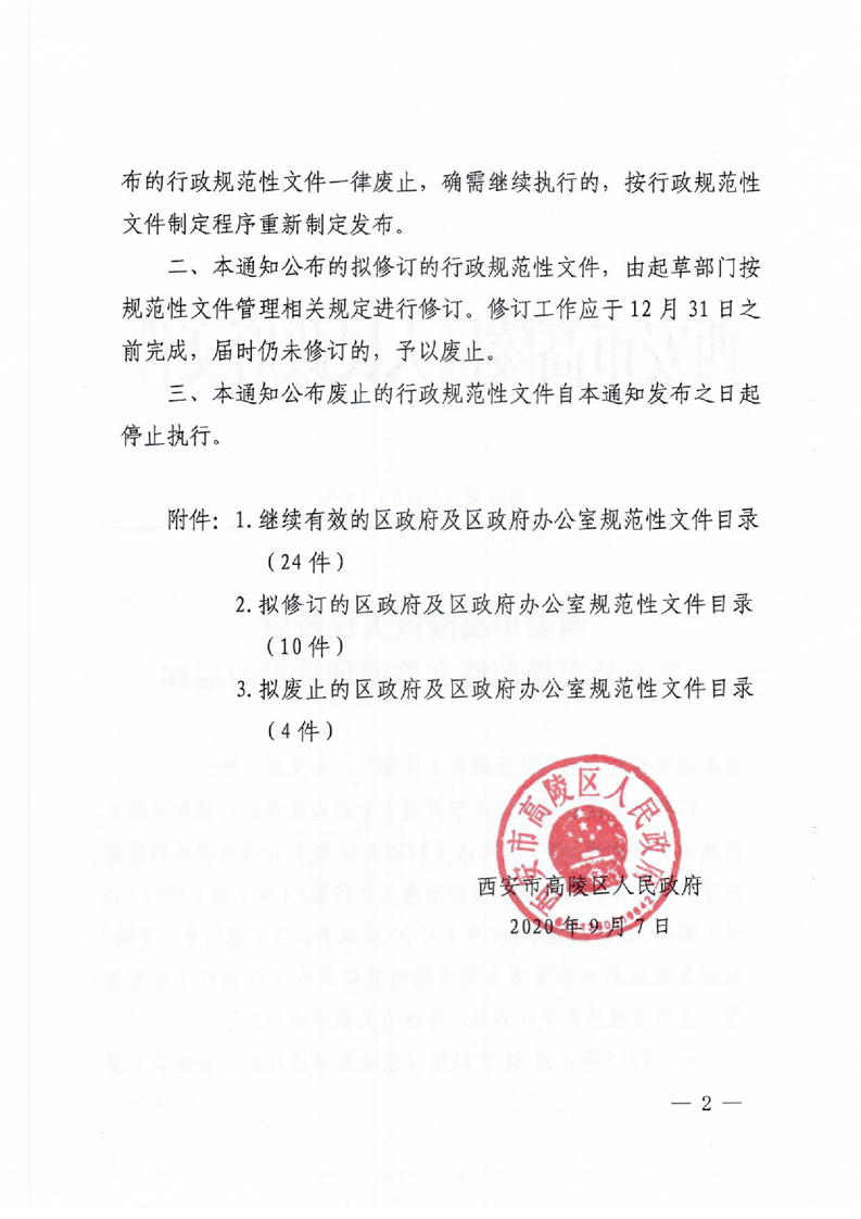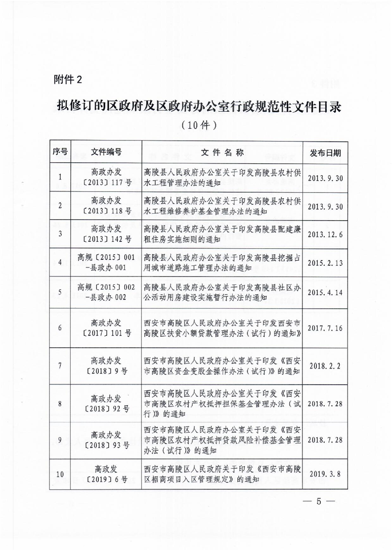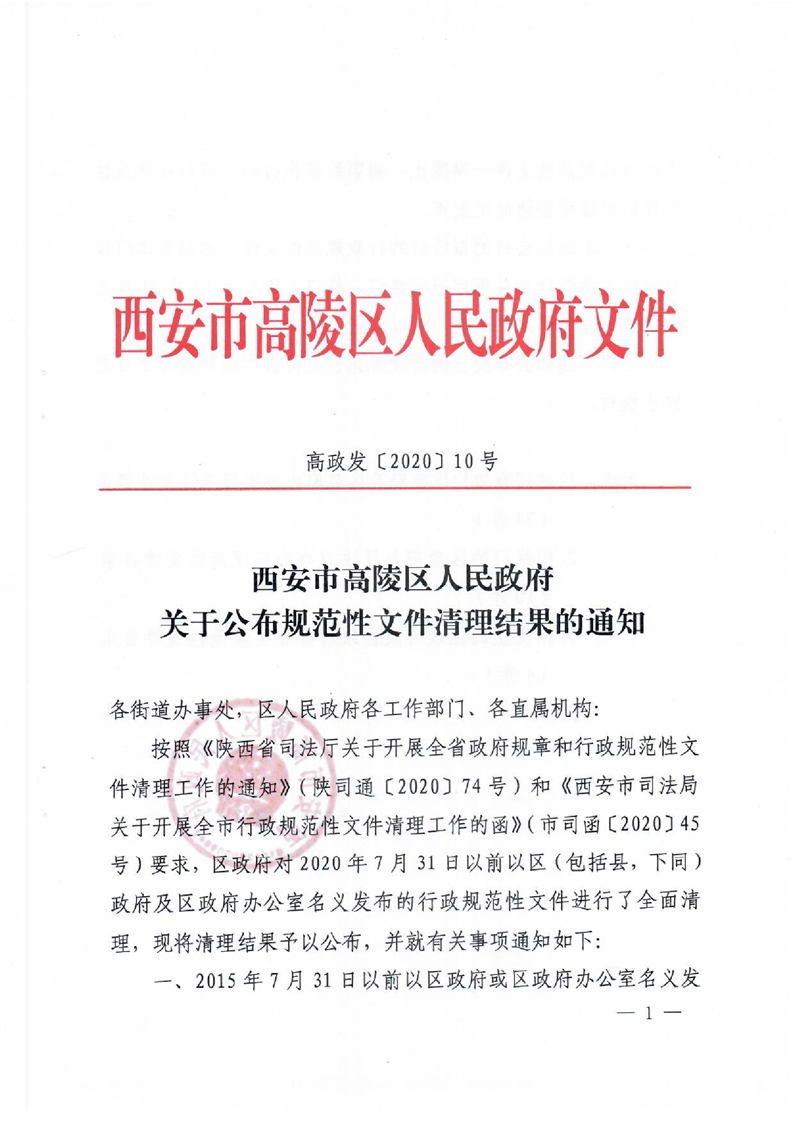 西安市高陵区人民政府关于公布规范性文件清理结果的通知