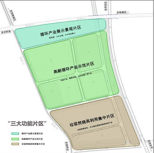 8 | 循环经济产业园 | 高陵区循环经济产业园项目东至G5京昆高速(高陵区段)、南至泾渭九支渠、西至210道、北至310国道,项目规划总用地面为1824.9亩,园区内规划建设生活垃圾无害化处理项目、餐厨垃圾无害化处理项目、医疗垃圾无害化处理项目(拟1.7亿)、污水处理厂项目、污泥处理厂项目、炉渣综合利用项目等6个综合处理项目。 | 2021-2023 | 56 | 56 | 产业园充分利用区域优势,形成综合处理能力强、技术一流的循环产业链,成为周边处理能力卓越的再生资源循环经济产业园。是以资源高效利用和循环利用为核心,建设垃圾焚烧发电、污水处理等高效高端产品生产基地,形成“一心、一环、两轴”的空间结构。 |